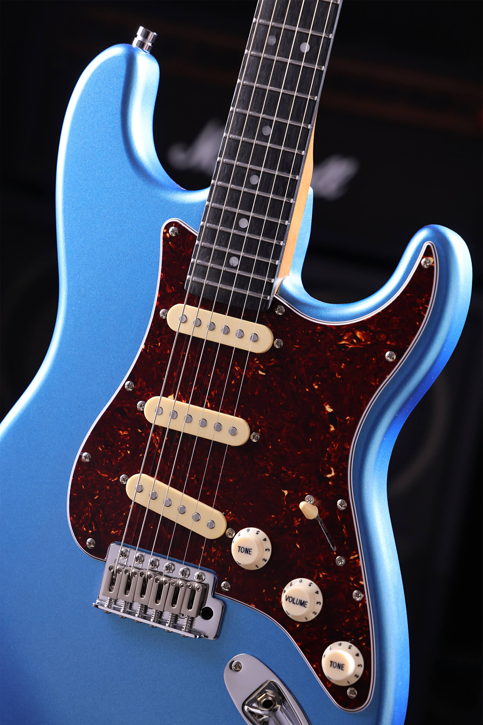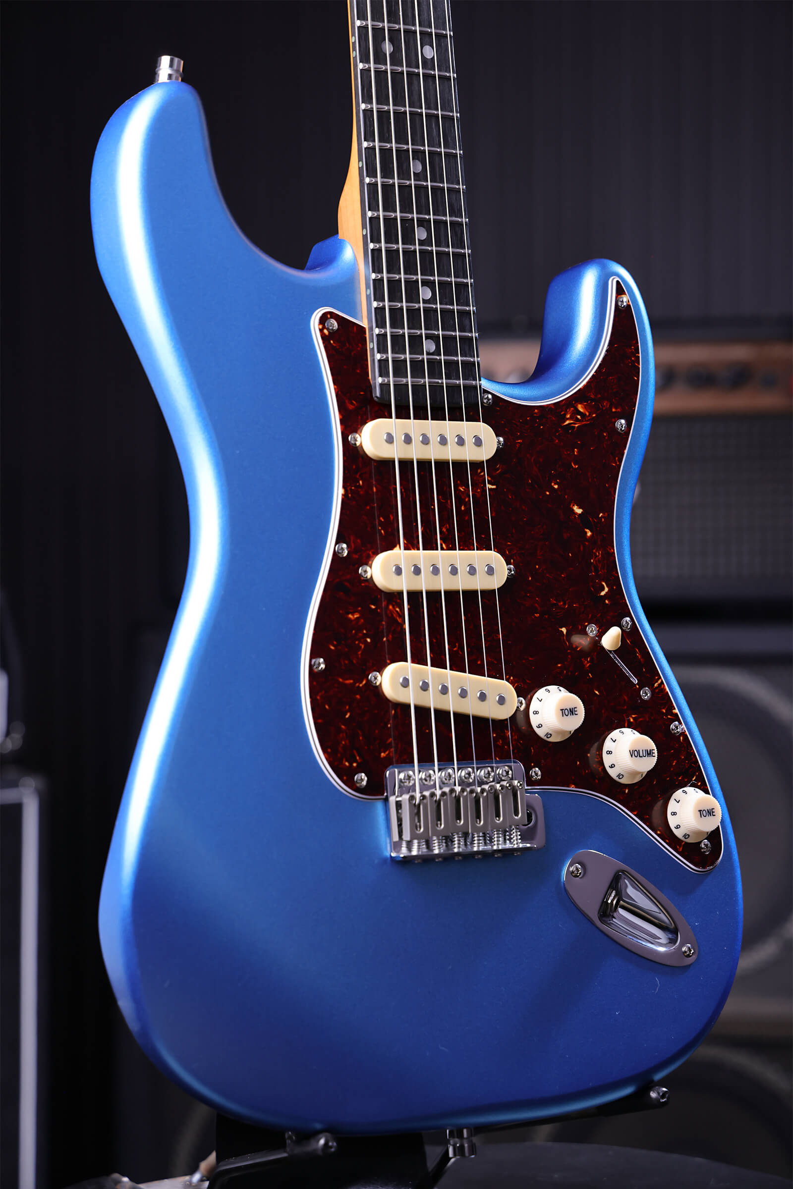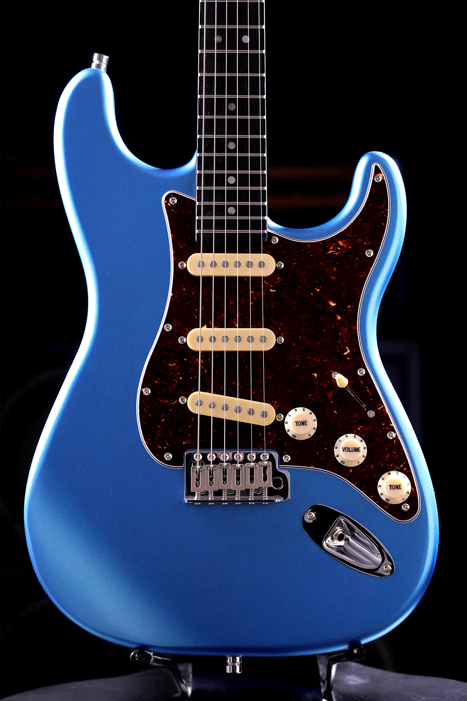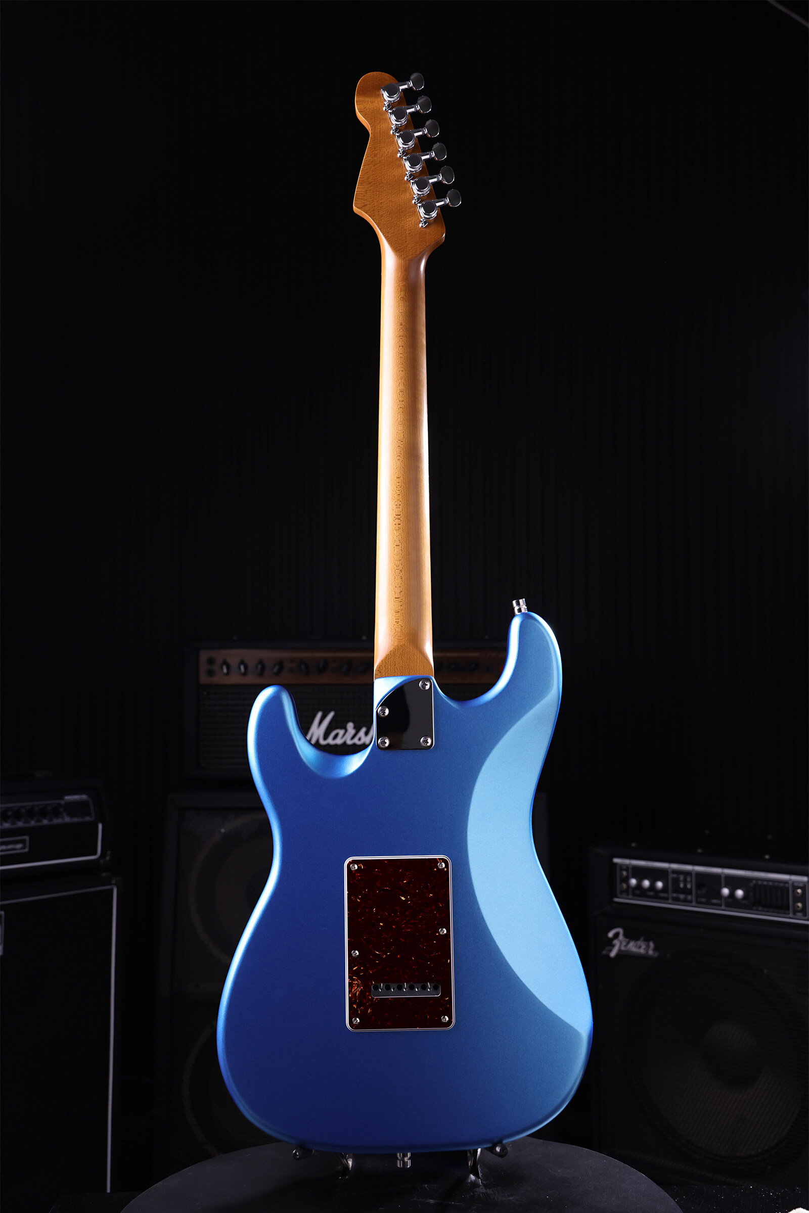 The satin-finished roasted maple neck with rosewood board feels like an old friend from the first time you pick it up. Nitrocellulose lacquer over lightweight Paulownia means the guitar breathes and ages honestly, checking, wearing, becoming uniquely yours. Stainless steel jumbo frets that will outlast you. Tremolo stays stable and returns to pitch. Locking tuners hold through bends. Custom-wound Alnico V pickups deliver clarity and bite without harshness. Luminous side dots keep you oriented on dark stages.