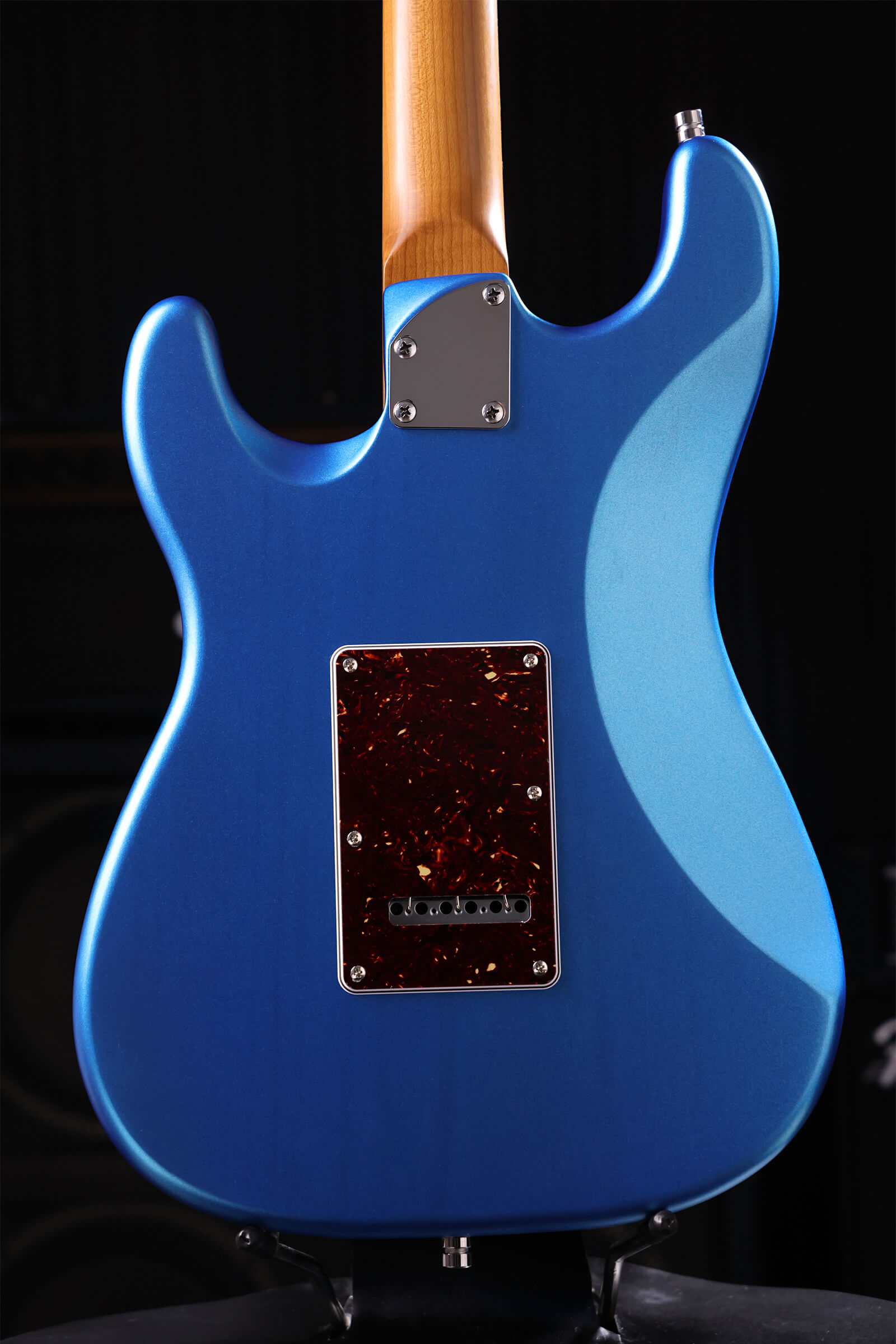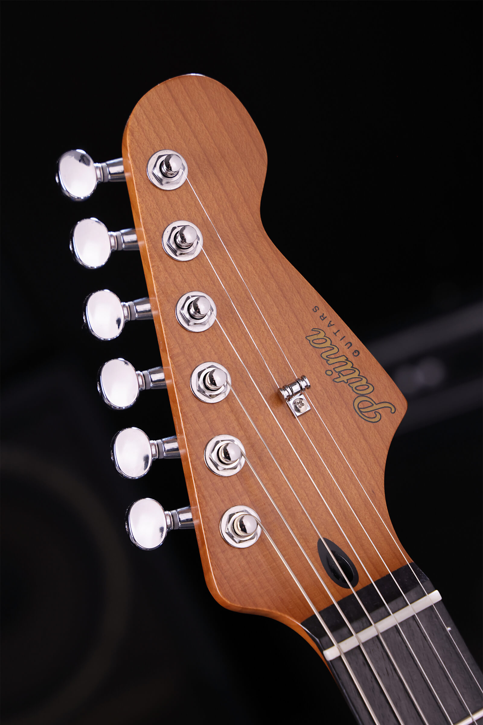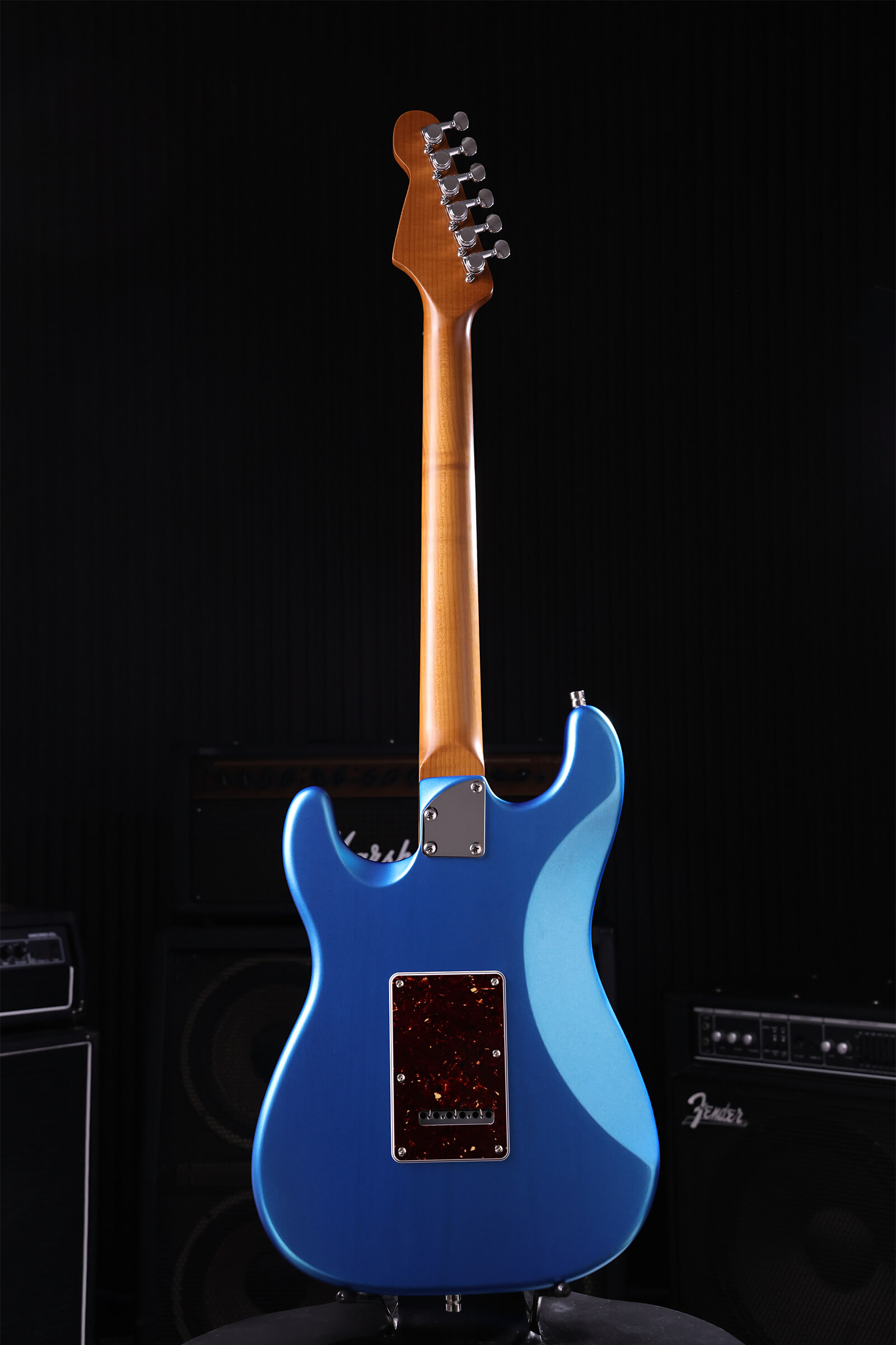 Nitrocellulose lacquer over lightweight Paulownia breathes and ages with you. The satin-finished roasted maple neck has no sticky gloss to fight through, it feels right immediately. Stainless steel jumbo frets that will outlast you. Tremolo stays stable and returns to pitch. Locking tuners hold through bends. Custom-wound Alnico V pickups deliver clarity and bite. Luminous side dots for dark stages.