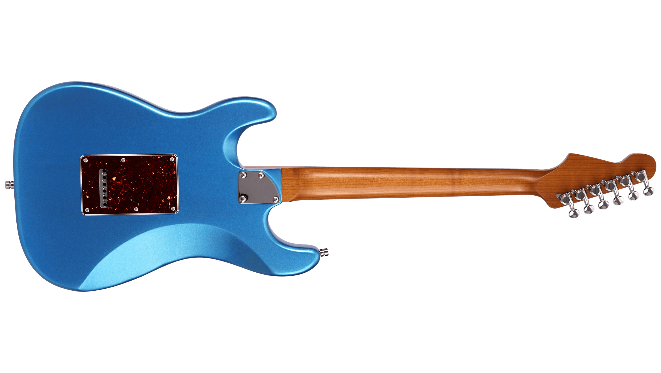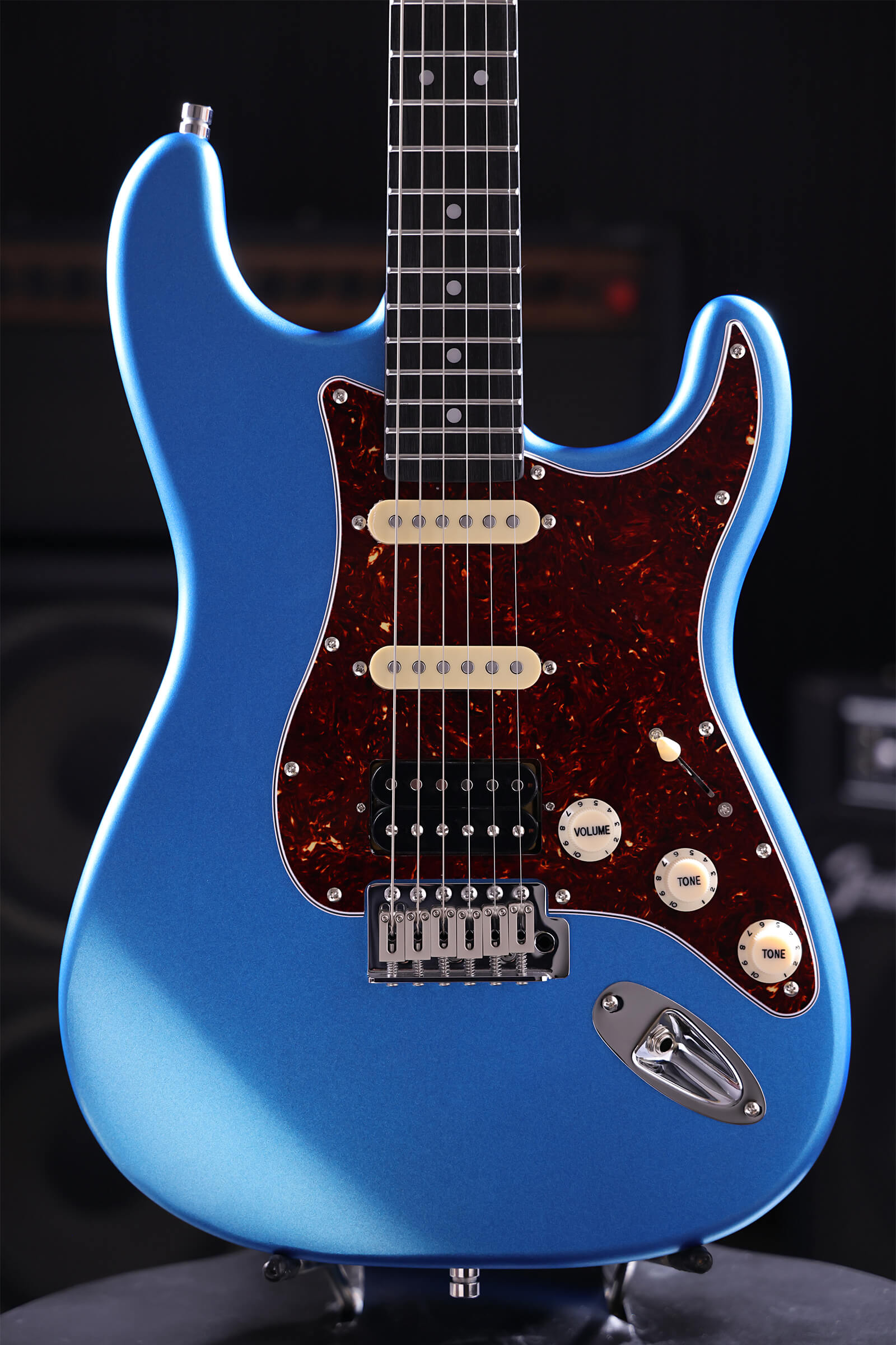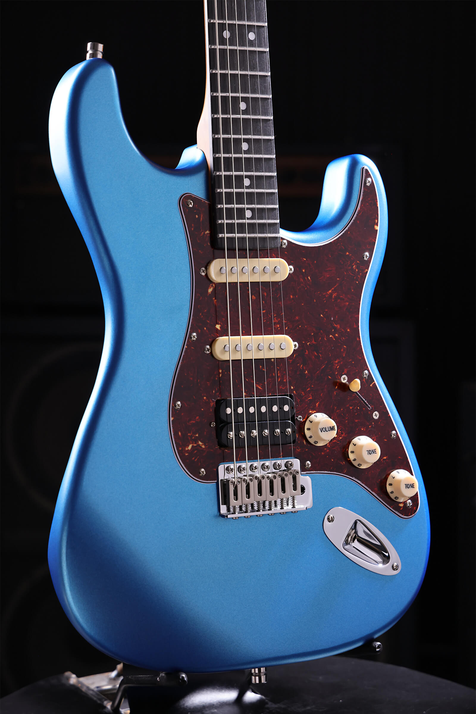 Nitrocellulose lacquer over lightweight Paulownia breathes and ages with you. The satin-finished roasted maple neck has no sticky gloss to fight through, it feels right immediately. Stainless steel jumbo frets that will outlast you. Tremolo stays stable and returns to pitch. Locking tuners hold through bends. Custom-wound Alnico V pickups deliver clarity and bite. Luminous side dots for dark stages.