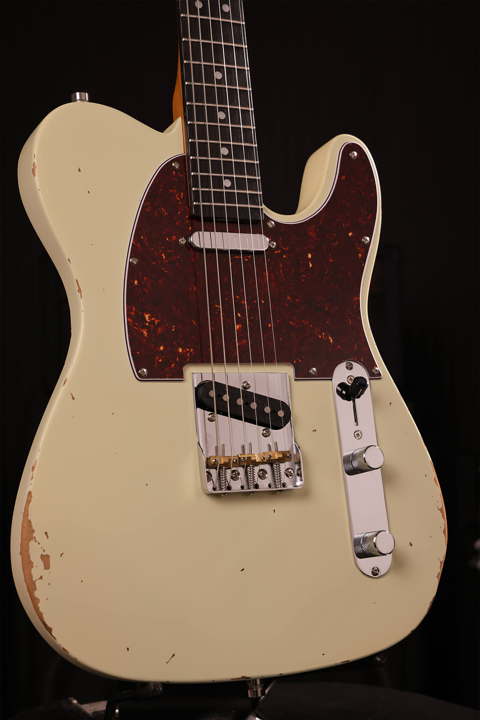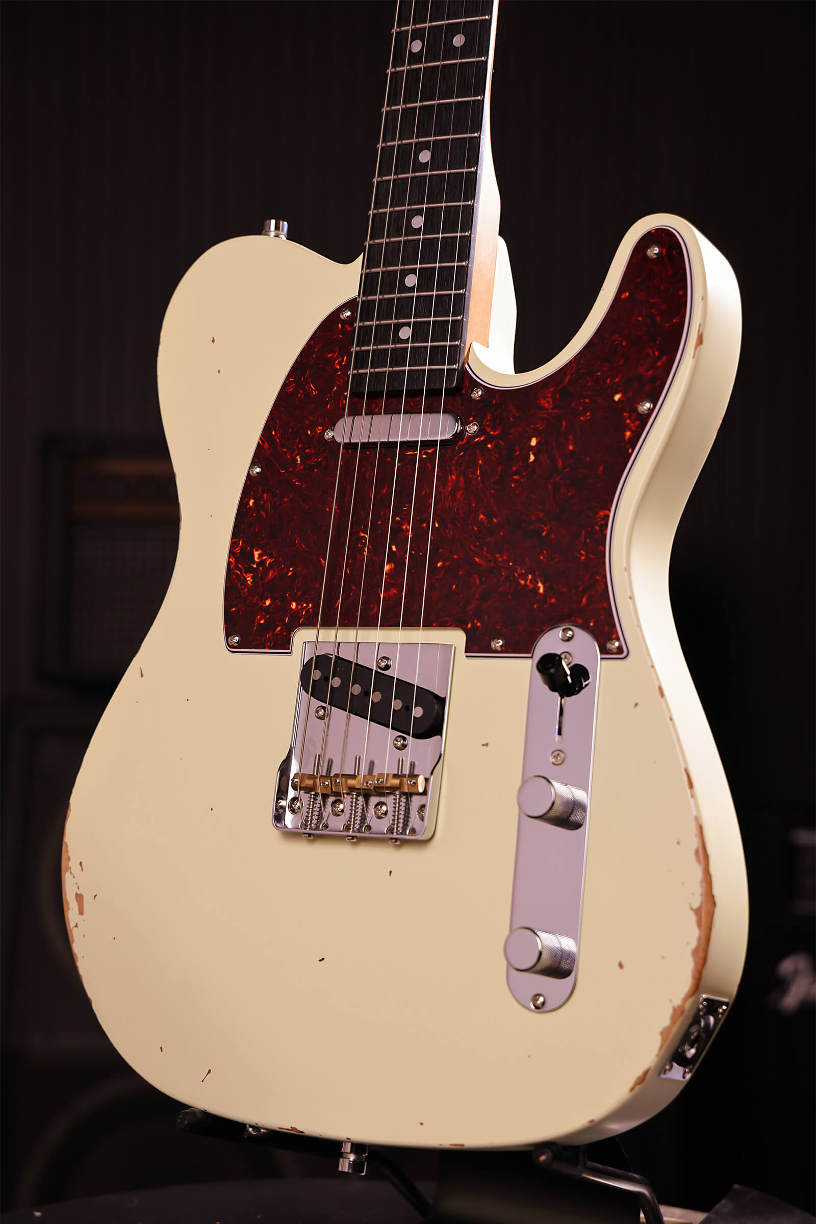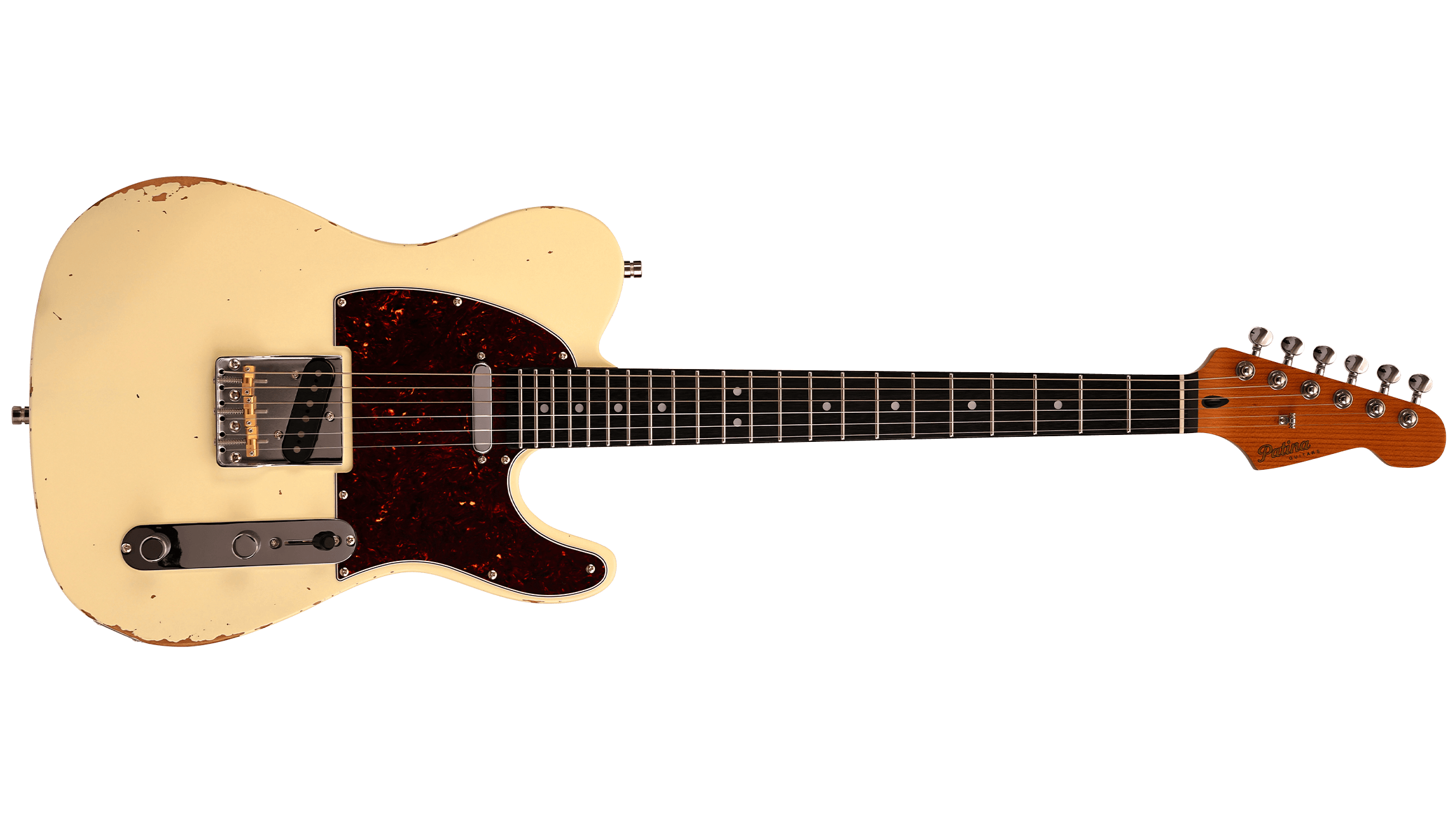 Two single-coils. Classic single-cutaway bite with vintage wear already applied. The PT-6 delivers the twang and cut this shape is known for but looks like it has some rock and roll tales to tell.