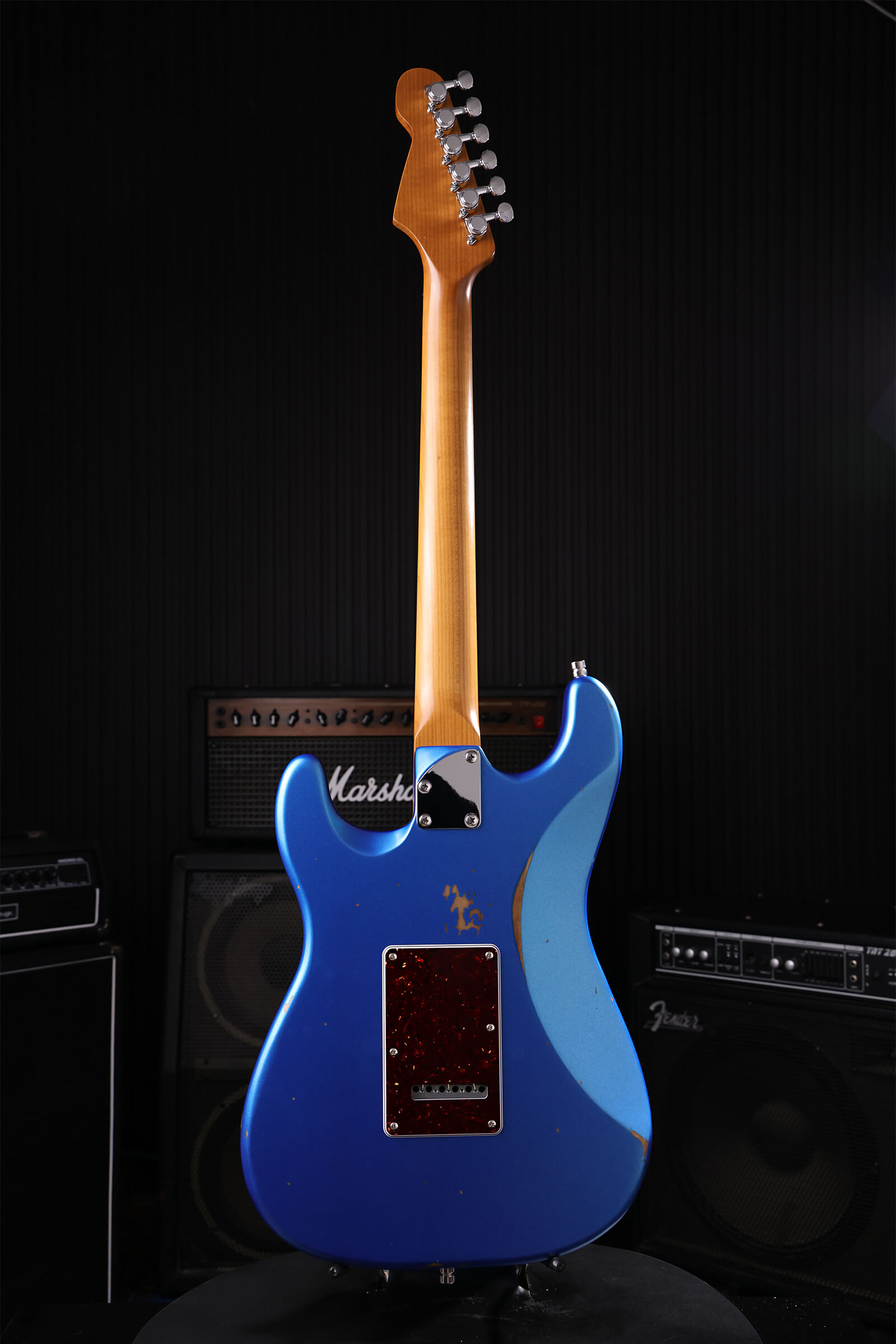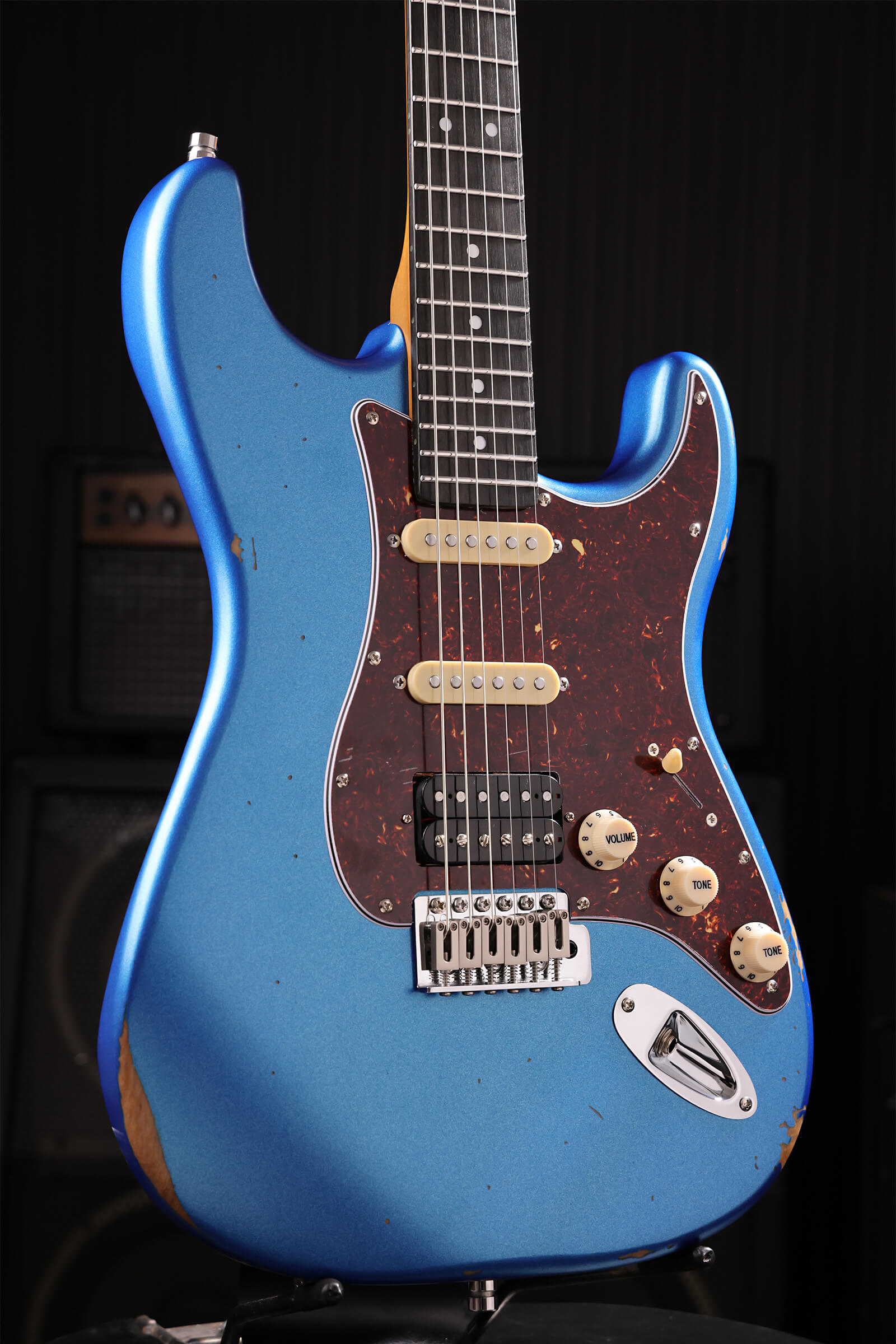 The reliced nitrocellulose finish shows wear and checking from day one, authentic vintage aesthetics without worrying about that first ding. Satin roasted maple neck with rosewood board feels comfortable immediately. Stainless steel jumbo frets stay smooth for years. Tremolo and locking tuners keep everything stable. Custom-wound Alnico V pickups handle everything from sparkle to grunt without losing definition. Luminous side dots keep you grounded on dark stages.